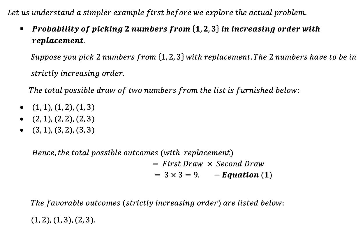 Probability of Strictly Increasing Draws (With and Without Replacement). (Category: Probability)