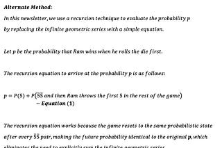 Probability of Winning in an Alternating Dice Game - Part 2. (Category: Probability)