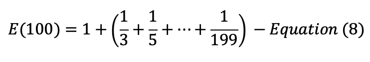 E(100) = (1 + 1/2 + 1/3 + ….+ 1/199) - (1/2 + 1/4 + 1/6 + …. + 1/198)